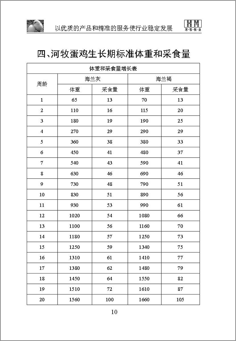 >> 河牧蛋鸡生长期标准体重和采食量