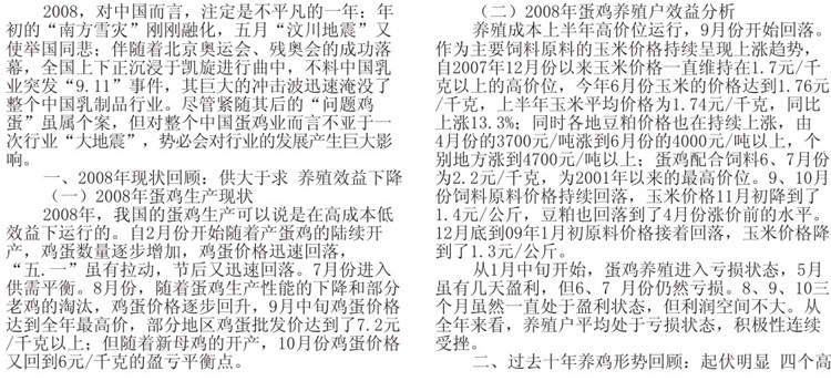 2008年蛋鸡业现状回顾及前景展望