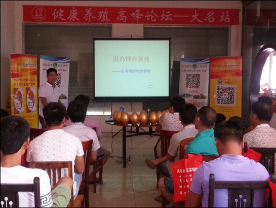 河牧牧业五高雏鸡“为您奠定基础,天牧生物 专心专业为您保驾护航。 15年 7月19日,衡水河牧牧业有限公司联合石家庄天牧生物科技有限公司在邯郸大名县胜利召开“《蛋鸡健康养殖高峰论坛》”巡回技术讲座,到场有100余人,会场座无空席。最后砸金蛋活动将会场推向高潮 。
