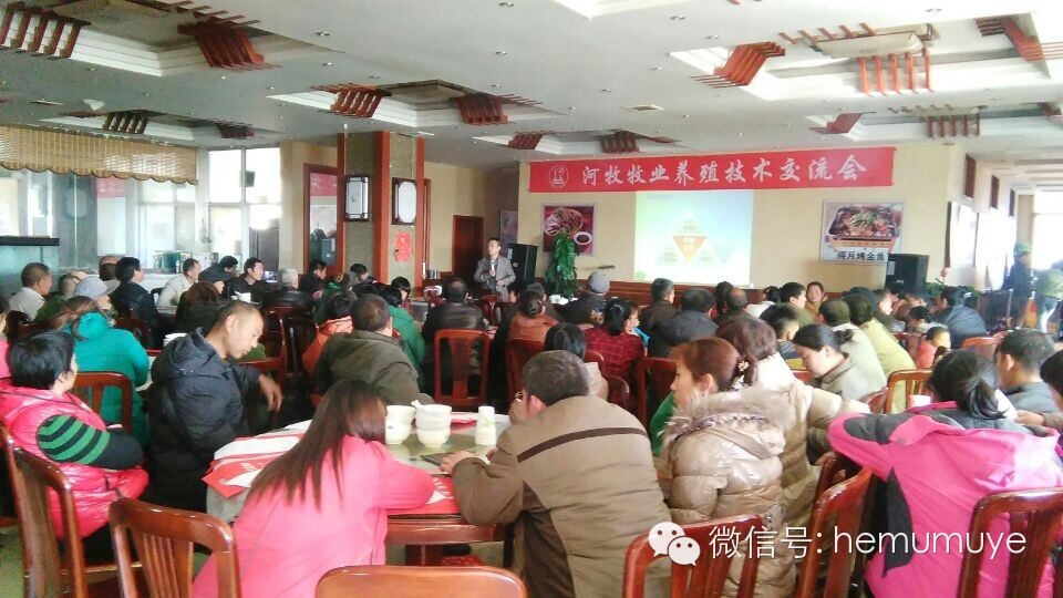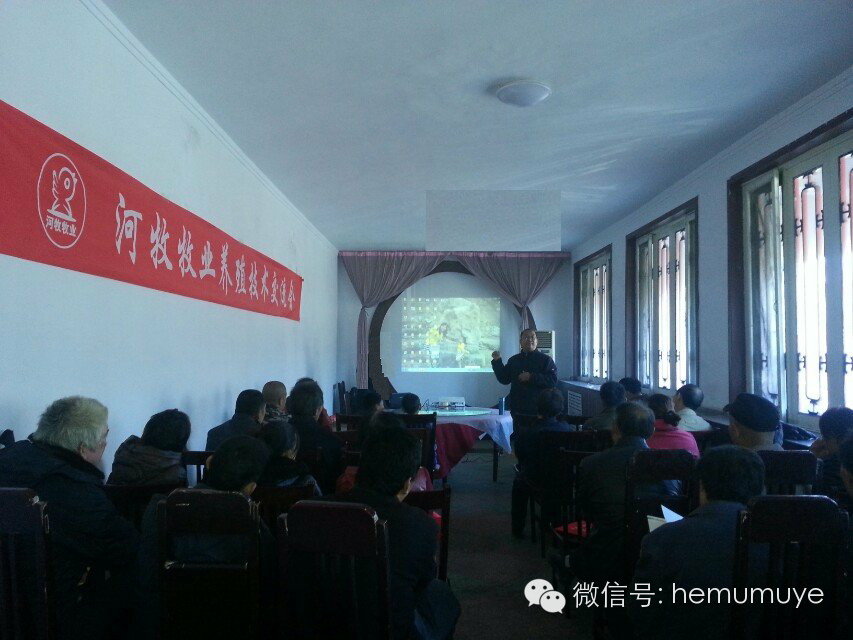 2014年11月份河牧牧业针对当前鸡蛋行情.蛋鸡养殖形势以及秋冬季易发疾病分别在河北(曲周.馆陶.井陉.平山)和山东(夏津.武城)连续举办了6场【蛋鸡养殖交流会】,总计到场人数230余人,签合同20余万。本轮技术讲座的及时举办深受广大客户的欢迎,收到良好的效果。 平山讲座照片: