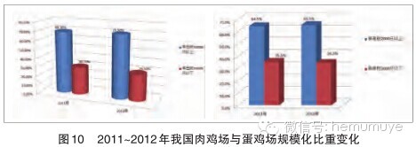 由图9可看出,黄羽肉鸡毛鸡价格逐年下降,2014年4月后,价格逐步上涨并创造历史高点。 7 转型期我国家禽产业的变化特点 数据显示,2007年至今,我国禽产品的生产与消费量基本持平,肉类总产量逐年提高,畜产品产量稳步发展(其中人均肉类占有量超过世界平均水平,人均禽蛋占有量达到发达国家水平)。畜牧业转型时期,我国家禽业呈现了新的特点:一是畜禽良种供应能力不断提高,畜禽规模化养殖快速发展(图10);二是鸡蛋期货的介入,刺激了鸡蛋市场活跃;三是更容易受经济大环境的影响。